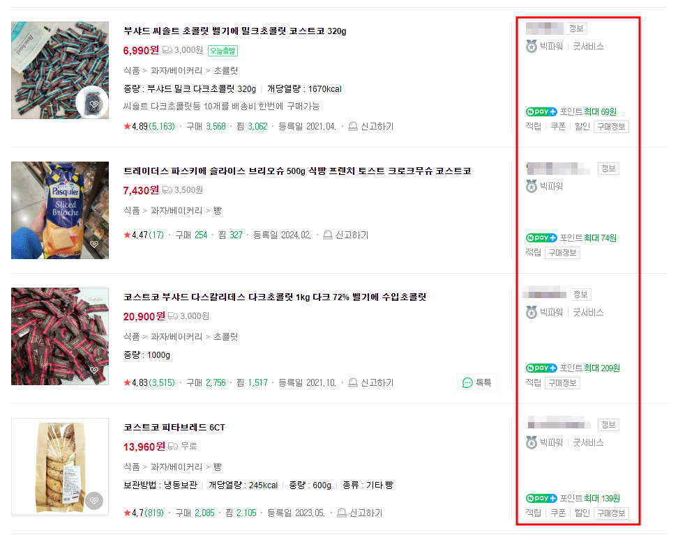 상위에서 팔고 있는 셀러들은 전부 코스트코에서 물건을 사서 고객에게 보내는 방식으로 판매를 하여