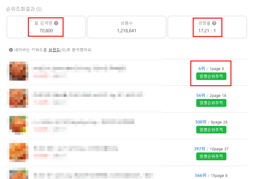 내 상품이 몇위에 위치해있는지 한번에 알려줍니다.