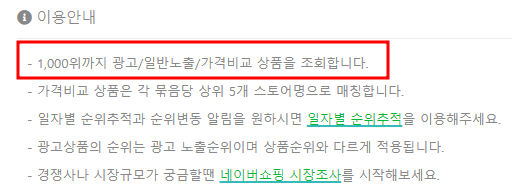 다만 너무 후순위(1000위 미만))에 있는 경우에는 검색되지 않습니다.