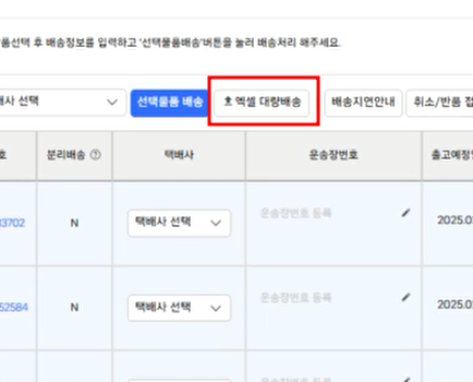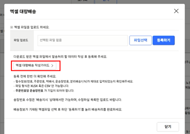2. 그리고 상단에 보이는 엑셀 대량 배송 버튼을 눌러줍니다.
