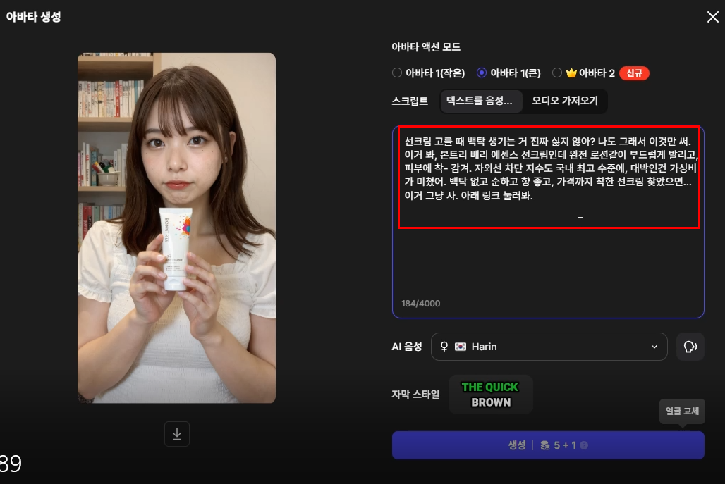11. 최종적으로 생성 버튼을 누르면 됩니다. 처음 가입하면 10크레딧을 주기 때문에 무료로 만들 수 있습니다.