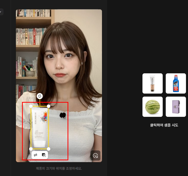 5. 상품이 들어가면, 내가 원하는 위치에 상품을 놓고 크기 등을 조절해줍니다.
