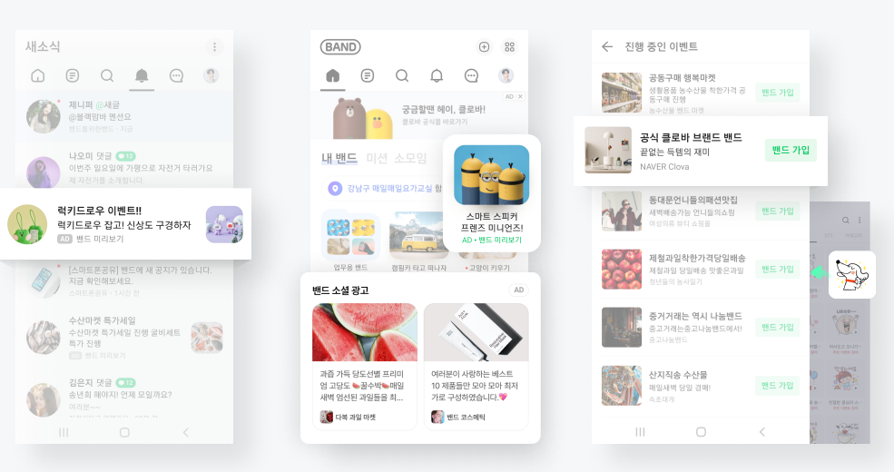네이버 밴드 하시는분들이라면 광고들 보신 적 있으시죠? 이런 것들도 네이버에서 광고를 통해 진행이 가능합니다.