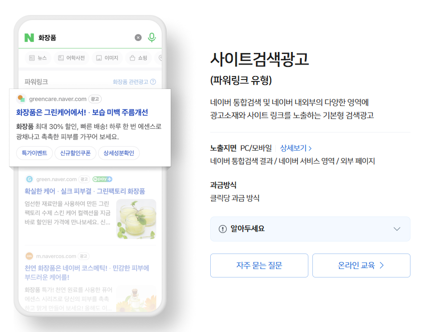 가장 기본적이고 검색했을 때 통합 맨 위에 뜨는 광고입니다. 파워링크라고도 하는 광고입니다. 많이 보신 적 있으시죠?