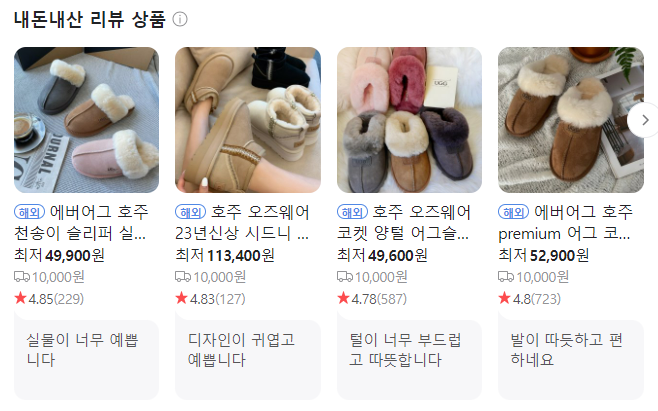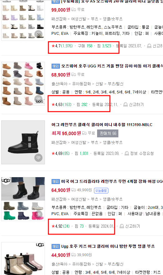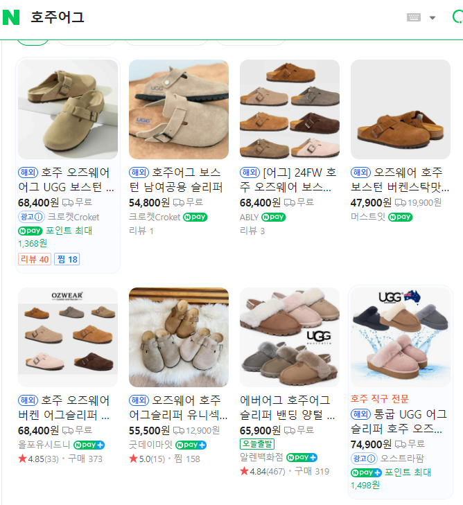 아래 보시는 것처럼 "어그" or "UGG" 식으로 검색했을 때,