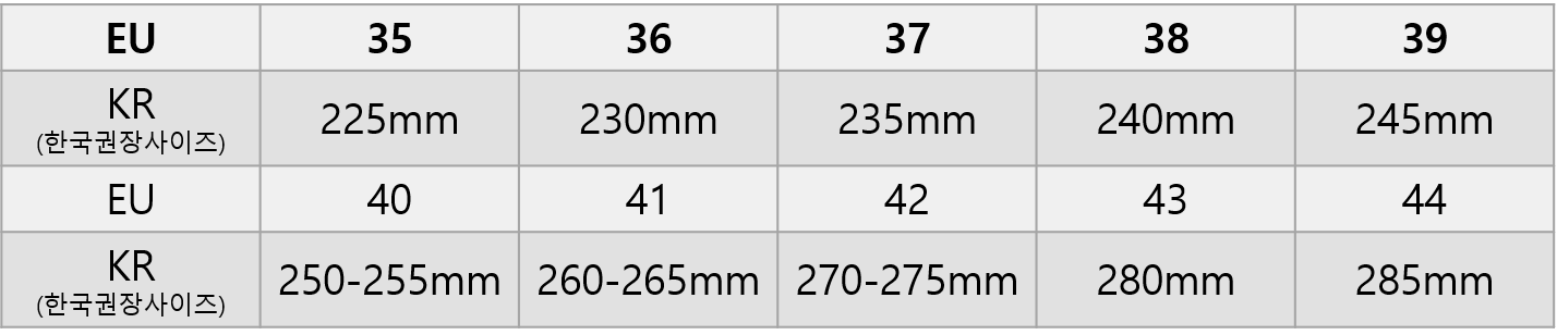 어그의 사이즈는 EU를 보통 따르는 편입니다.