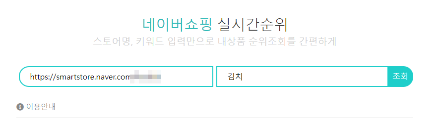 간단하게 내 스토어 주소를 입력하고 노출을 노리는 키워드를 검색했을 때