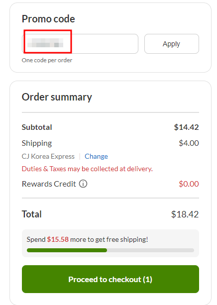 여기에서 우리는 18.42를 소싱가로 하지 않고, 아까 저장해둔 "리워드 코드"를 사용합니다.