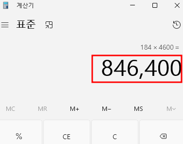 9. 상품가가 4,600원이니까 계산식은 184*4,600원이 될 겁니다. 이를 한달(30일)로 계산하면 한달에 약 2500만원 정도의 매출을 이 상품 하나로 만들고 있다는 것을 확인할 수 있습니다.