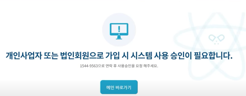 이런경우에는 전화하셔서 사업자등록증 번호랑 회원가입한 아이디 알려주시면 문제가 해결됩니다.
