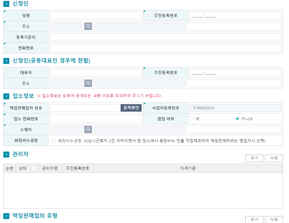 7. 팝업창이 뜨게 되면 영업소 및 소재지 입력(회사 소재지 입력하셔야합니다)