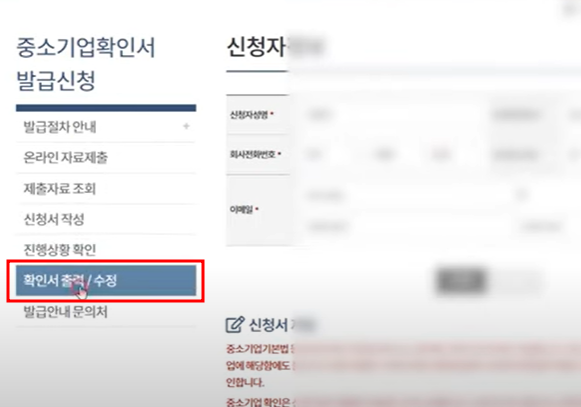 <중소기업 소상공인 확인서 발급방법>