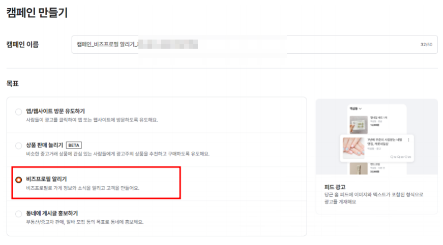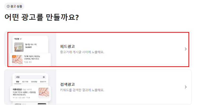 피드광고를 선택하시길 바랍니다.