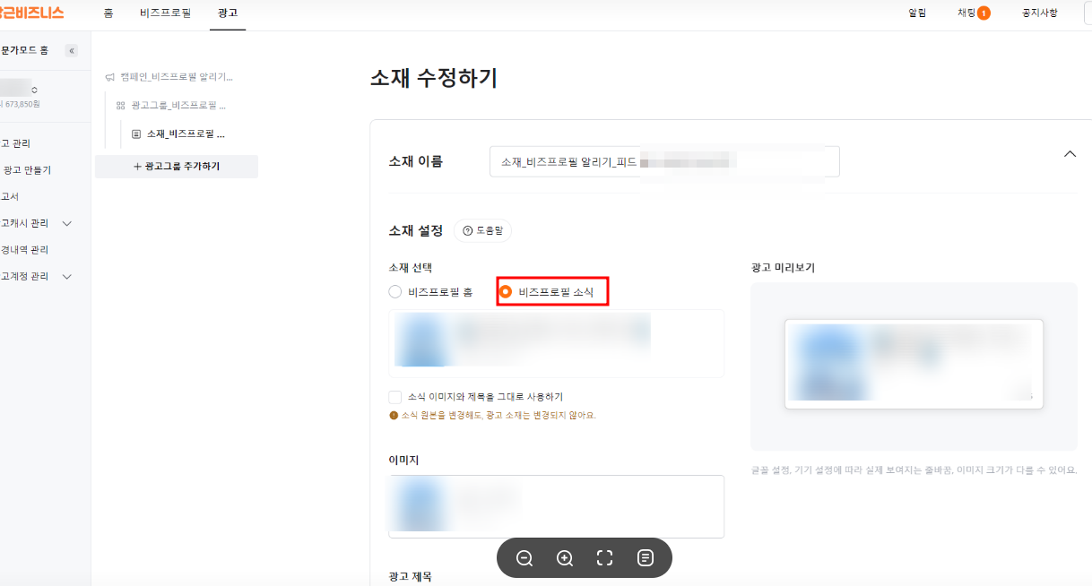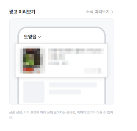 저의 목적인 소식글을 광고를 통해 홍보하고 있는데요.
