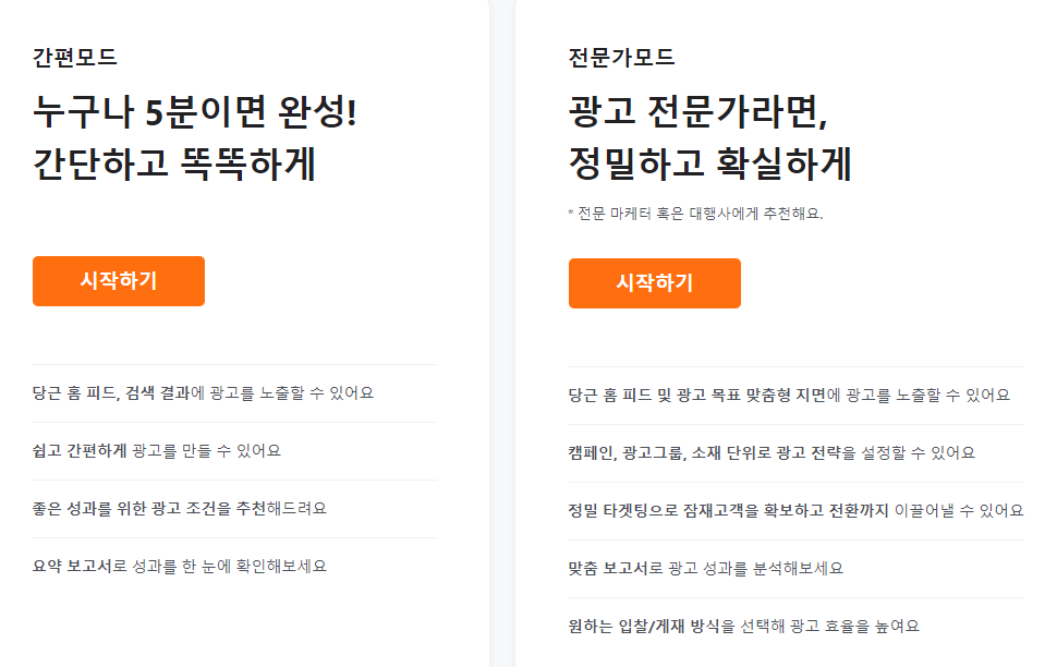 그만큼 디테일한 관리와 지표의 분석이 가능하다면 간편모드보다 훨씬 더 높은 고효율 광고가 가능한 곳입니다.