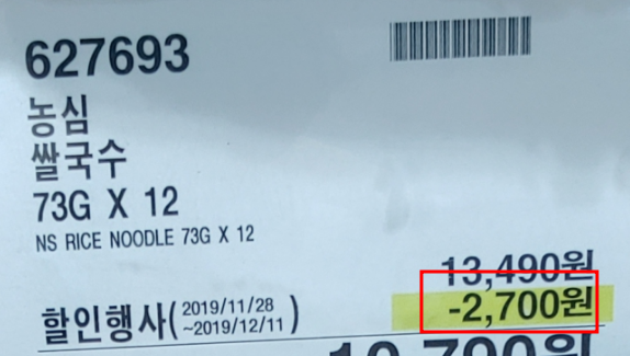 이 번호에 따라 제품별 할인을 하는 품목과 그렇지 않은 것들을 알수가 있습니다.