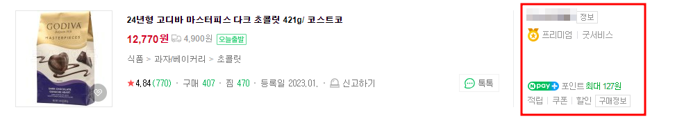 이런 프리미엄 셀러는 보통 대기업이나 중견기업 이상의 브랜드를 가진 업체들이나 가능한 수치입니다.