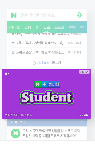 가끔 네이버앱을 실행시켰을 때 동영상이 자동으로 재생되는 경우를 경험해본적 있으실겁니다. 그런 방식으로 동영상을 고객들이 보게 만듦으로 송출할 수 있는 광고형태입니다.