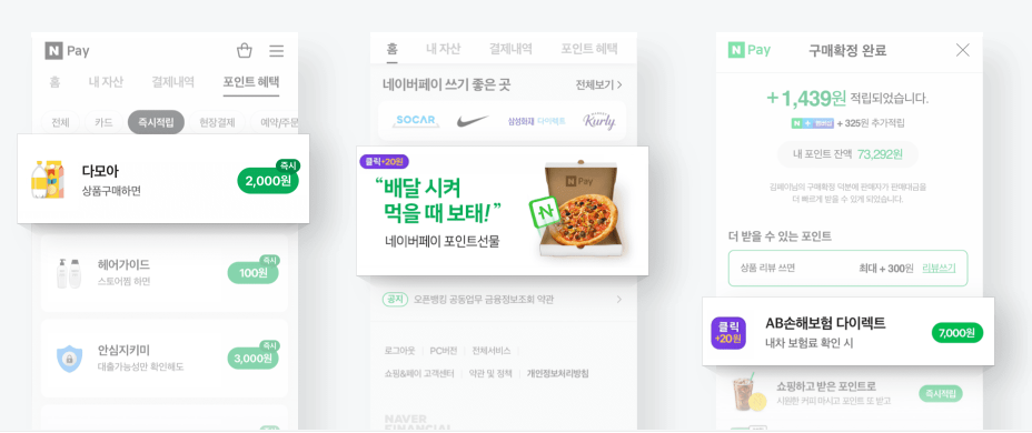 네이버페이에서도 광고가 뜨는 것을 본적이 있는데요. 이런 식으로 다양한 위치에 광고를 볼 수 있고 또한 우리도 이런 곳들에 광고를 할 수 있습니다.