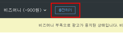 그 전에 우선 광고 승인이 되면 바로 광고가 돌아갈 수 있도록 하기 위해서는 비즈머니 충전(광고비 충전)을 해주셔야 합니다. 상단에 충전하기 버튼을 통해서 진행하실 수 있습니다.