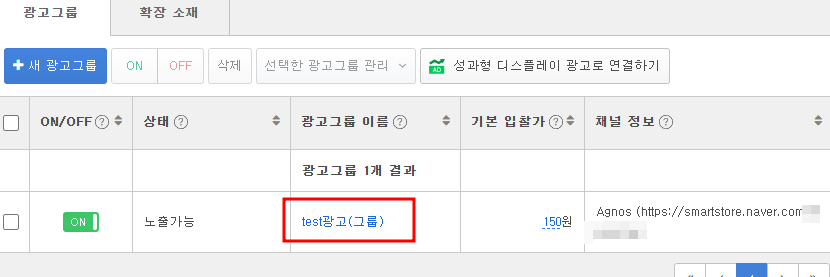 (추후에 8가지 지면 외에 다른 지면에도 광고를 하고 싶다면, 따로 그룹을 하나 더 만들어서 반대로 위 8가지를 노출 제한 매체로 설정하셔서 그룹을 2가지로 운영하시는게 효율 및 성과를 측정하기 좋습니다.)