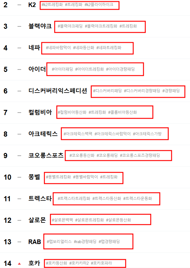 등산쪽 브랜드를 검색해보니 이렇게 브랜드들 순위가 나오는데요.