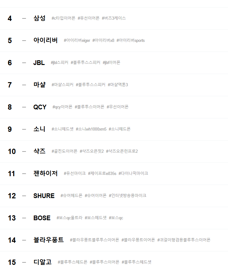 추가로 또 좋은 꿀팁중 하나는 브랜드마다 각각 제품별 선호되는 키워드들이 해시태그에 같이 나온다는 것입니다.