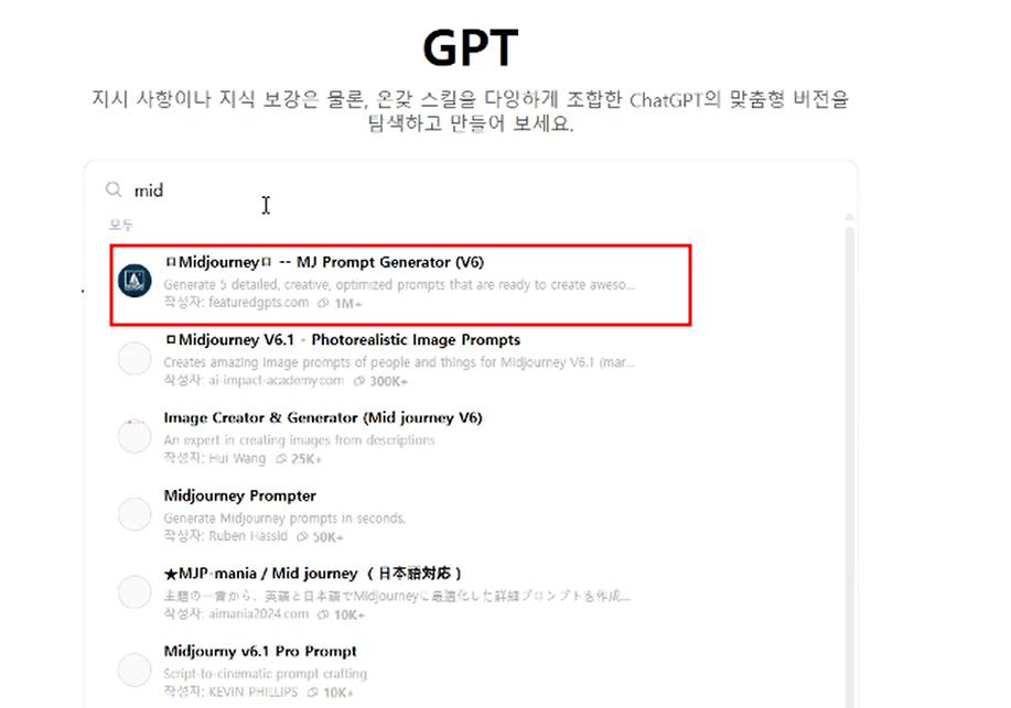이제 midjourney 전용 프롬프트로 들어가셔야 합니다.
