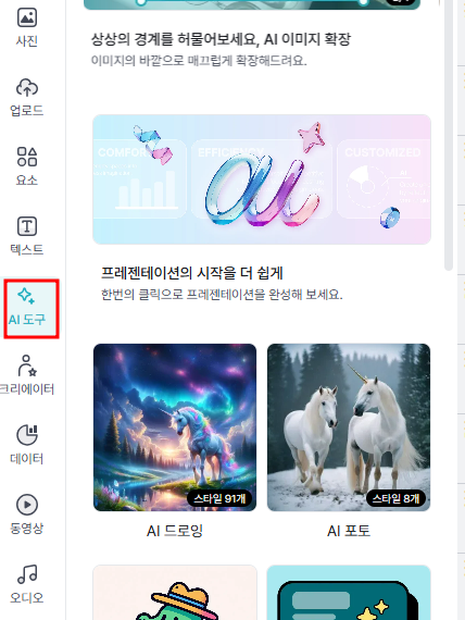 왼쪽에 AI 도구로 들어가세요.