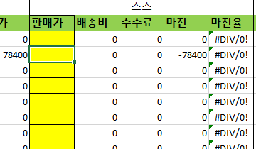 우선 판매가는 공란으로 되어있을 겁니다. 원래는 왕초보분들을 위해 여기도 고정마진으로 수식을 붙여놨었는데