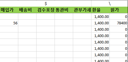 해외구매대행 건기식 1,400.00,$,\,스스,쿠팡 코드번호,제목,영문,링크,매입가,배송비,검수포장비,통관비,관부가세,환율,원가,판매가,배송비,수수료,마진,마진율,판매가,배송비,수수료,마진 자유롭