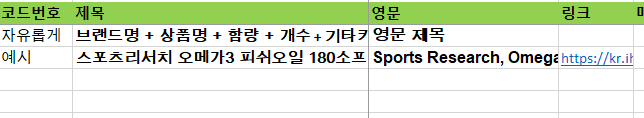 저는 이 리스팅 시트를 매일 상품 올리기 전에 먼저 만들어놓습니다.