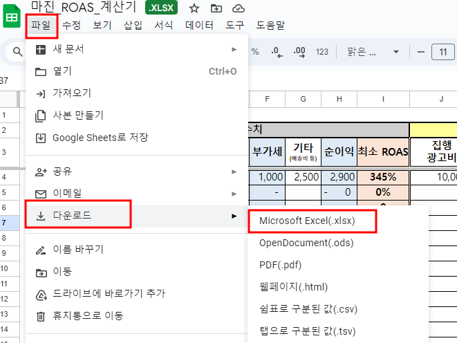 ROAS 계산기 엑셀파일은 아래에 남겨드릴게요.
